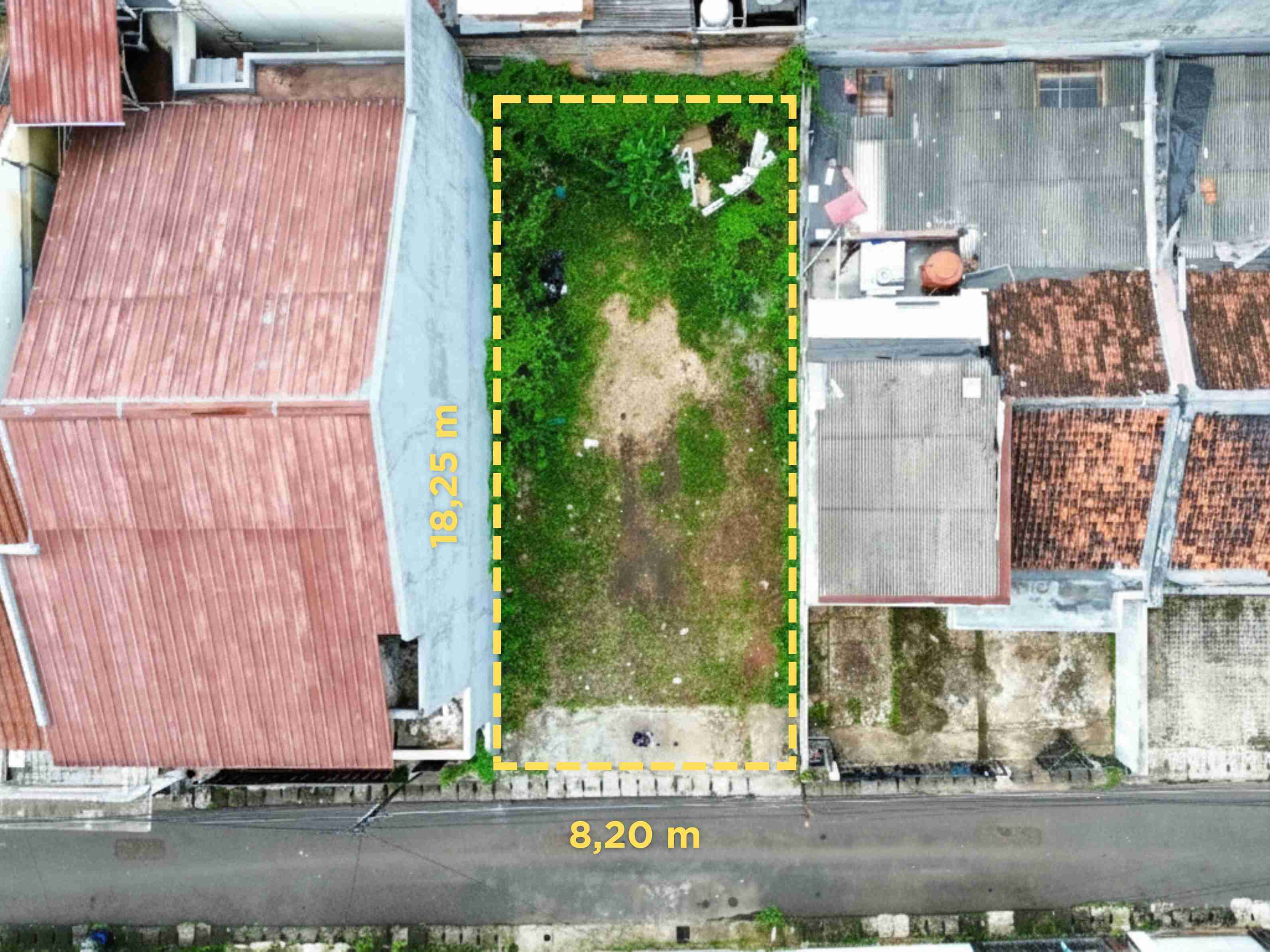 Dimensi Tanah ( L 8,20 x P 18,25 m ). Cocok Untuk Hunian Maupun Bisnis Kost - kostan.
